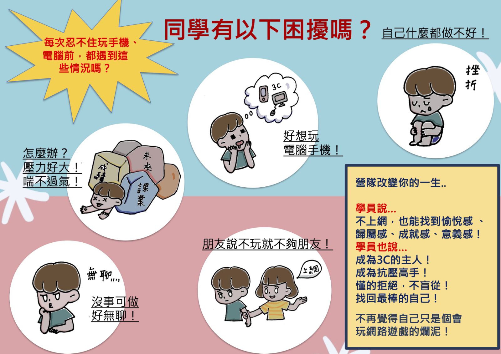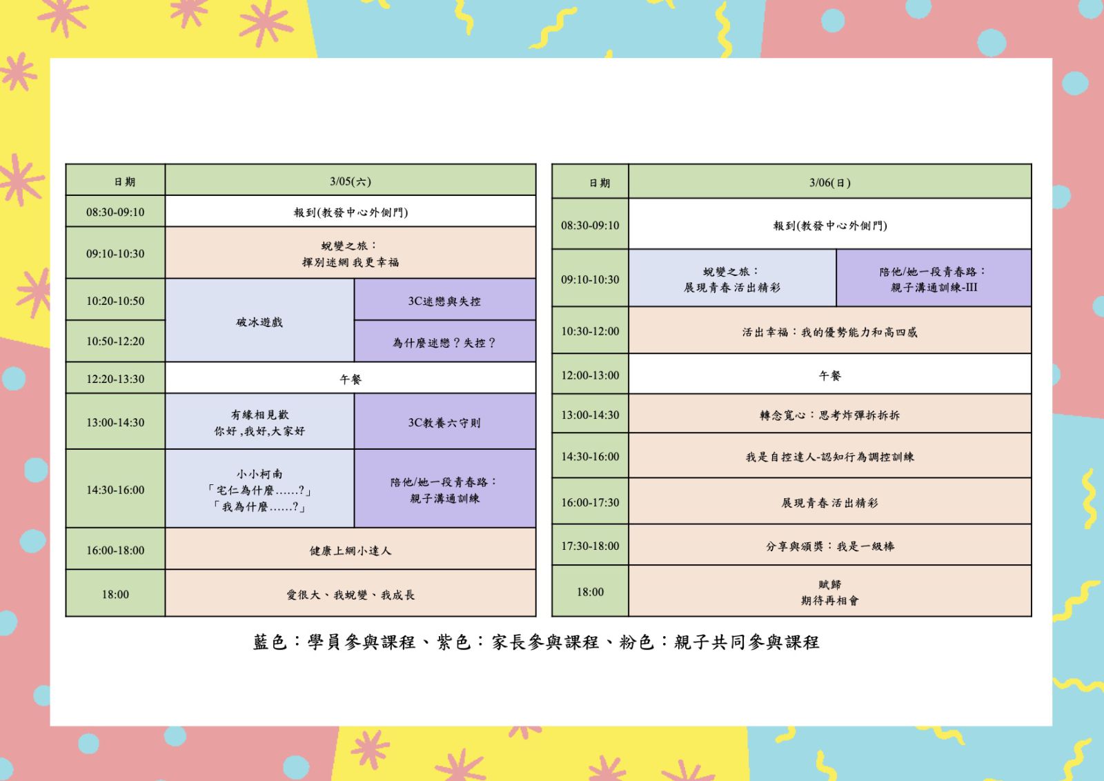 - 學員與家長課程學雜費、團體輔導費、講義費及餐費全免,由中心補助經費支應。